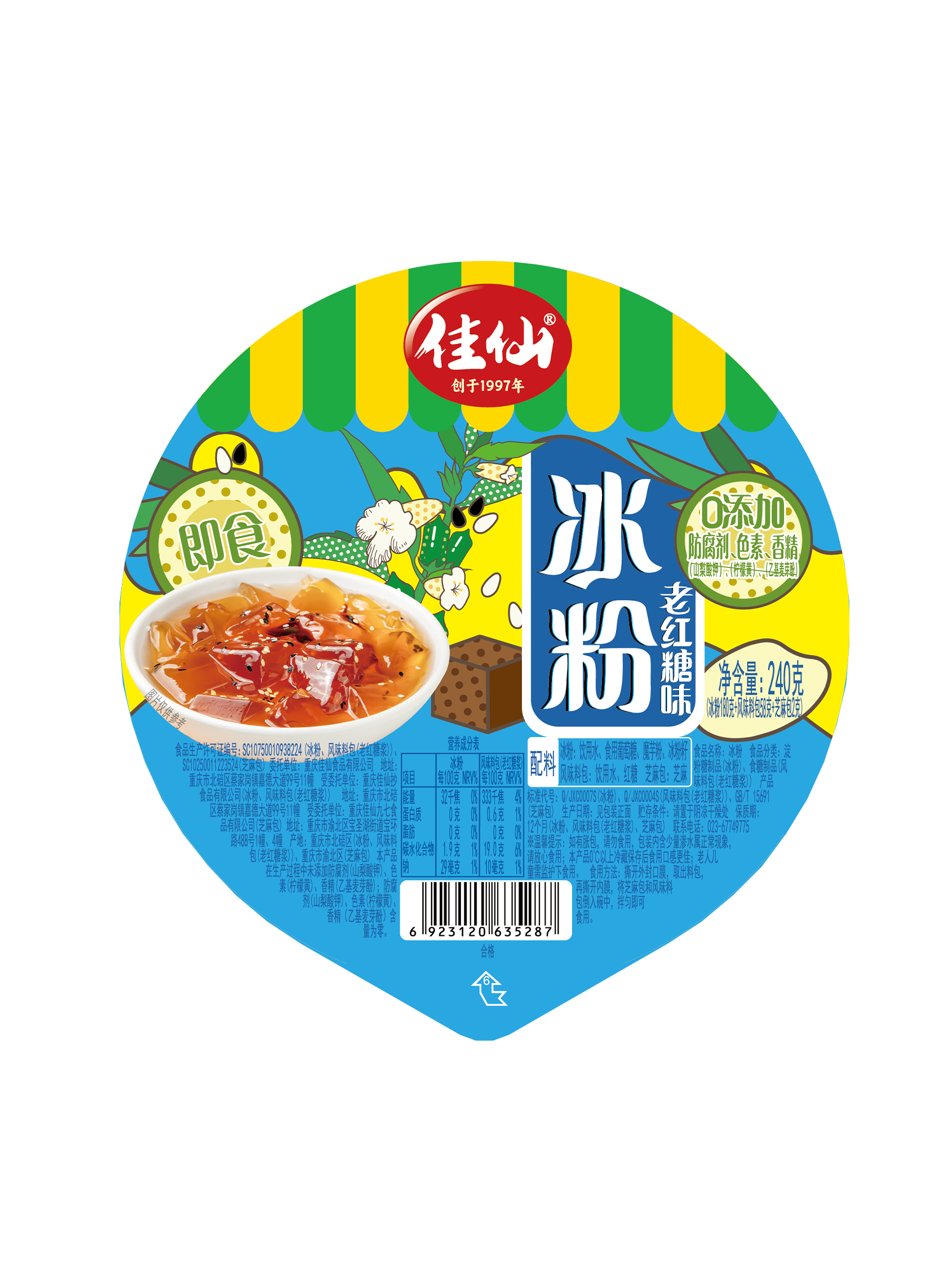 冰粉(老紅糖味)240g 系列配料 品簡介: 佳仙原味冰粉盒裝內增紅糖、堅果料包,無需準備任何配料;魔芋粉為原料,熱量低好吃不怕胖;獨立便攜包裝,想吃就吃;清熱消暑,生津止渴,是夏季的絕佳甜品。 產品賣點: 清熱消暑,美味熱量低,夏日絕佳甜品 品簡介: 佳仙原味冰粉盒裝內增紅糖、堅果料包,無需準備任何配料;魔芋粉為原料,熱量低好吃不怕胖;獨立便攜包裝,想吃就吃;清熱消暑,生津止渴,是夏季的絕佳甜品。 產品賣點: 清熱消暑,美味熱量低,夏日絕佳甜品 淘寶商城 天貓商城 京東商城