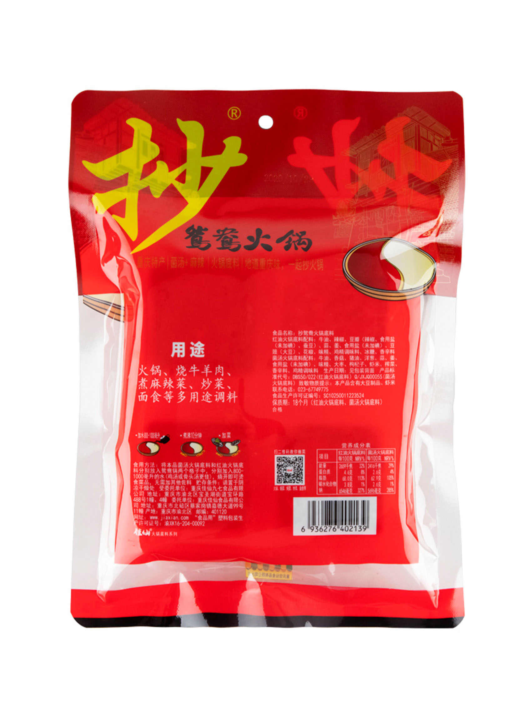 抄鴛鴦火鍋底料,由口感醇厚,麻辣適中的正宗重慶牛油火鍋底料,和湯鮮味濃,回味悠長的菌湯火鍋底料組成,口味均衡,能夠品嘗到麻辣與清淡兩種味道,完美解決怕辣問題。特別適合家庭聚餐,朋友聚會時食用。