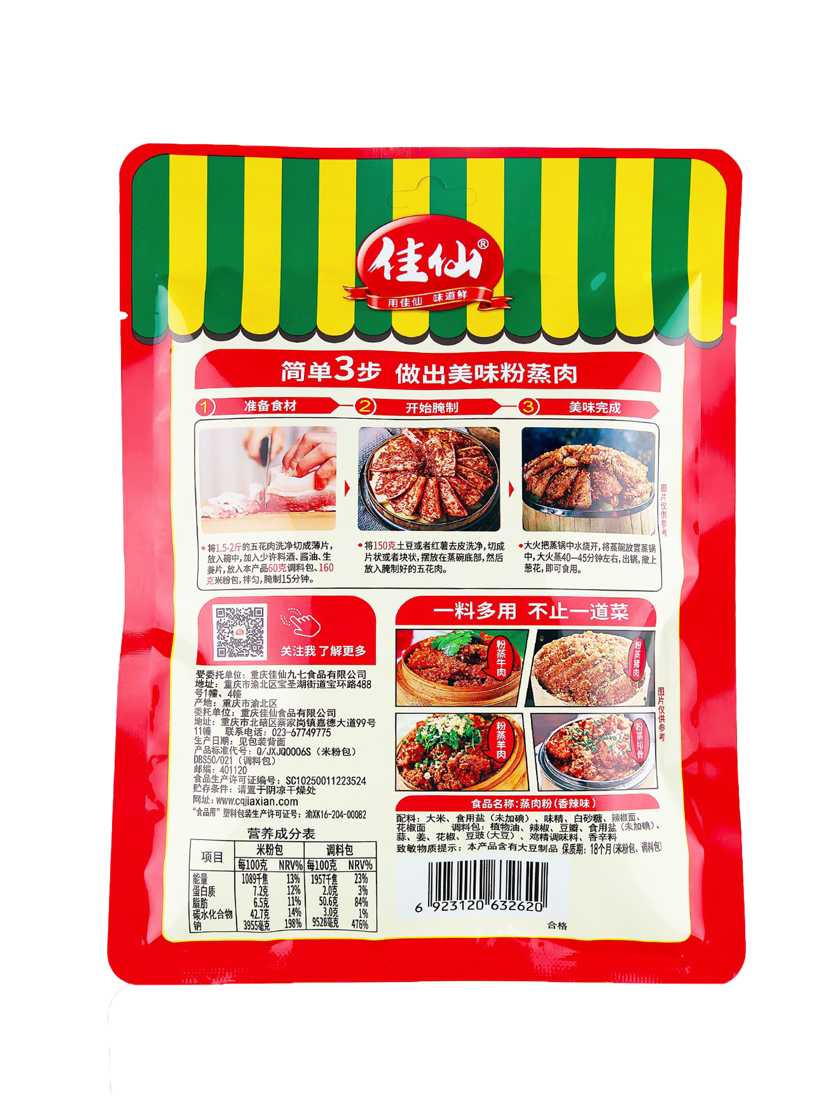 選取優質大米、多種香辛料精心配比制成蒸肉粉,香濃可口,嫩而不糜、操作簡單,一袋可蒸兩斤肉,性價比很高,可以用來制作粉蒸肉,粉蒸牛肉,粉蒸排骨等等美食,麻辣、五香、香辣三種不同口味同樣美味,足不出戶就能吃到餐廳的味道。
