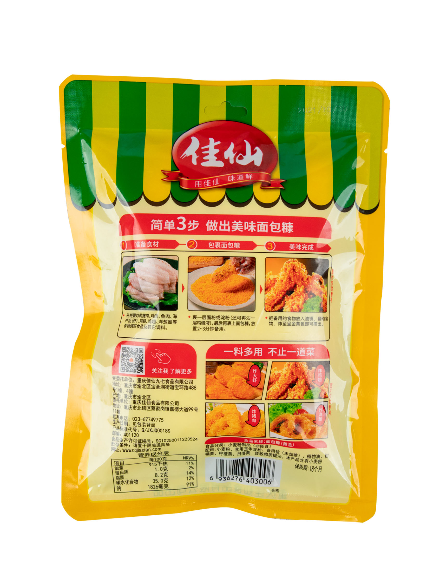 佳仙面包糠顆粒分明易裹粉,吸油少,耐炸不掉渣。可以廣泛用于各類油炸食品,如雞翅、海產(chǎn)品、等。能夠讓炸制的食材口感更加香酥松脆,可口鮮美。