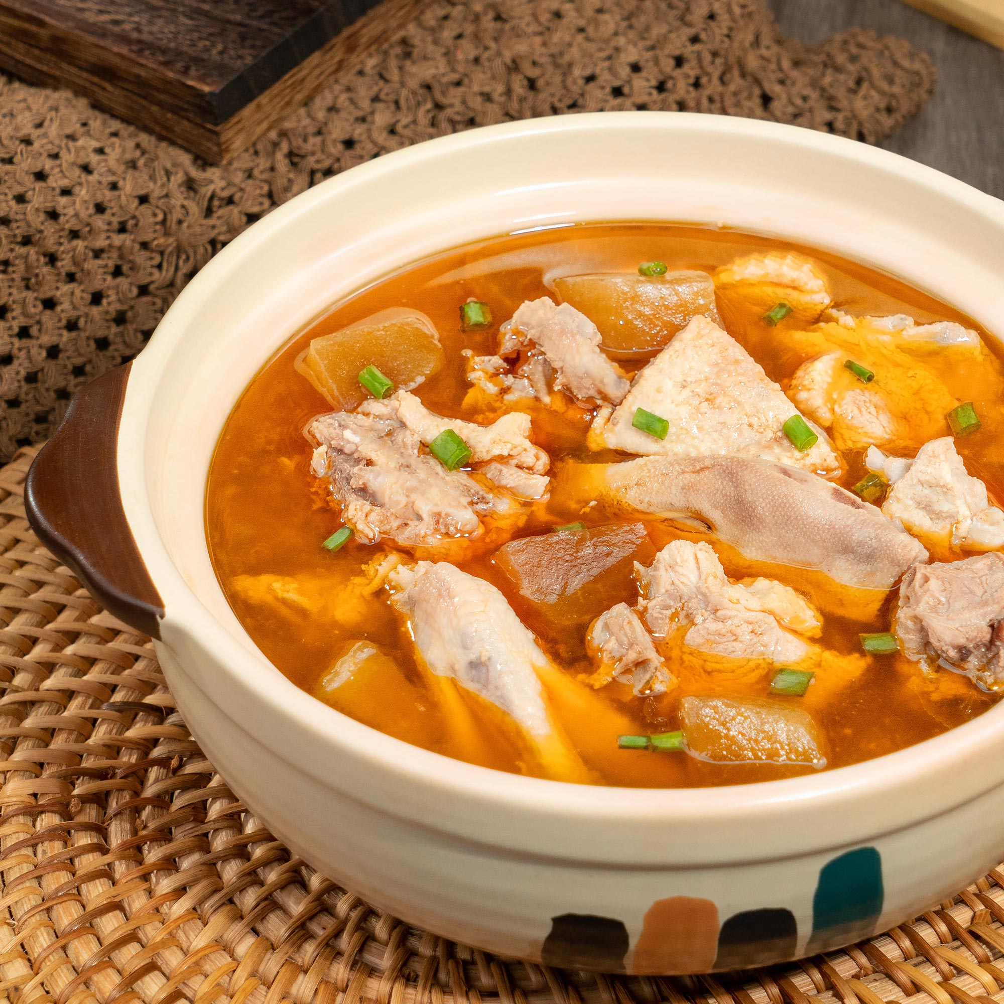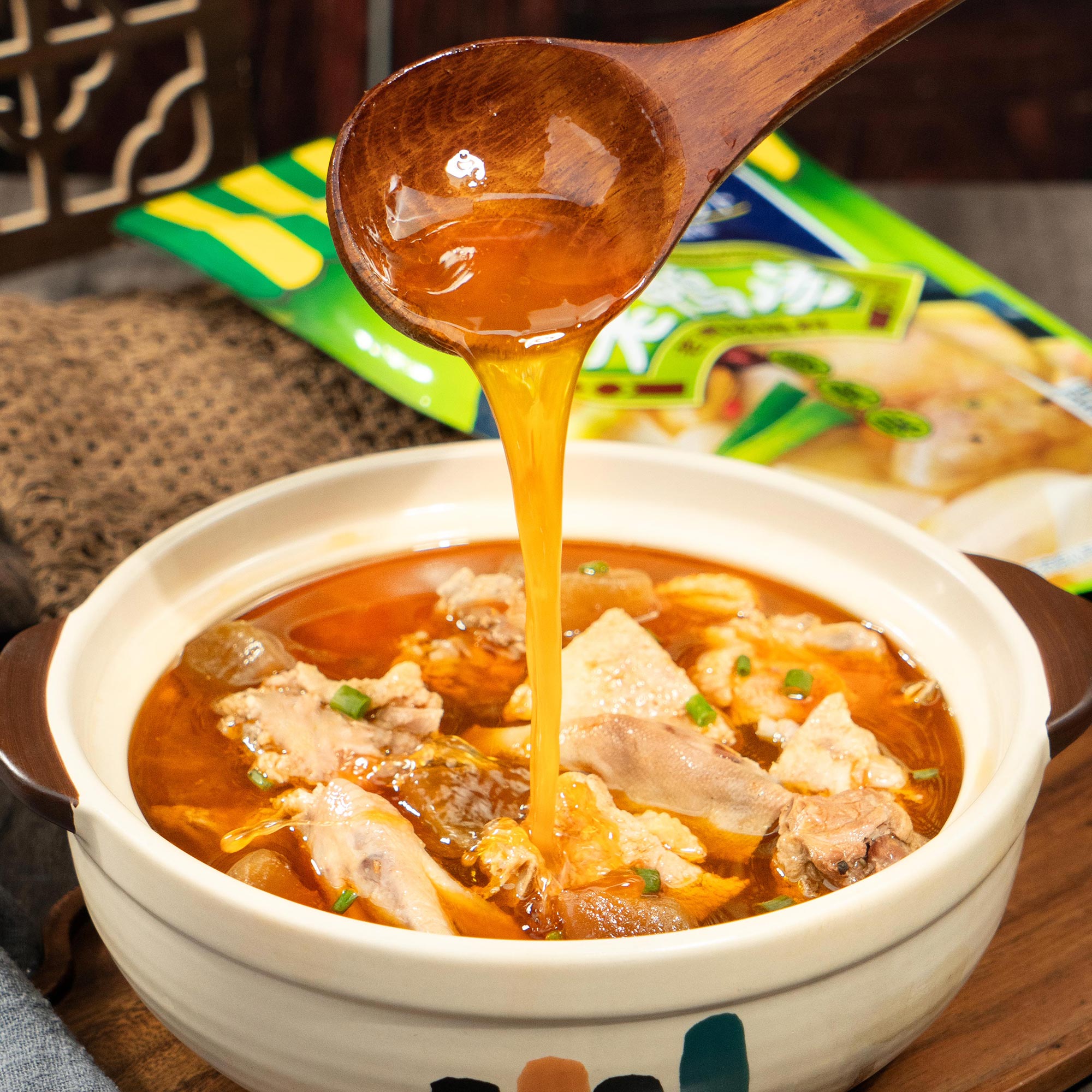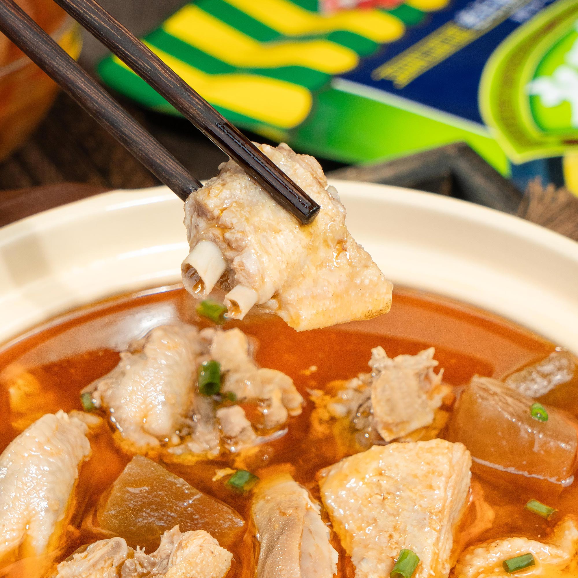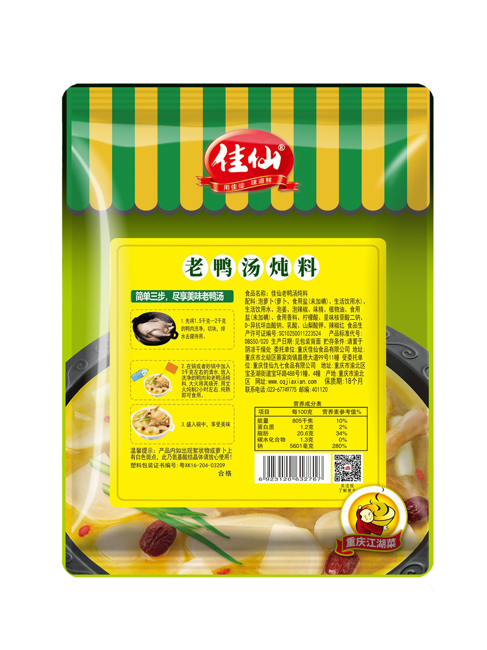 老鴨湯350g 系列配料 產品介紹:正宗川渝風味,添加老壇陳泡180天以上的酸蘿卜、泡姜、泡辣椒秘制湯底,蘿卜軟嫩多汁湯底酸爽開胃,無需添加其他調料,美味一包搞定,每袋可燉3-4斤鴨肉,也可以用于燉煮蹄花、雞肉等湯品。 產品介紹:正宗川渝風味,添加老壇陳泡180天以上的酸蘿卜、泡姜、泡辣椒秘制湯底,蘿卜軟嫩多汁湯底酸爽開胃,無需添加其他調料,美味一包搞定,每袋可燉3-4斤鴨肉,也可以用于燉煮蹄花、雞肉等湯品。 淘寶商城 天貓商城 京東商城