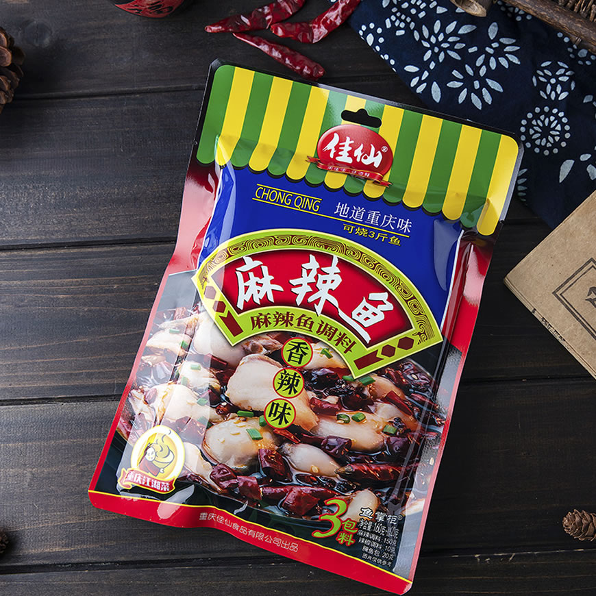佳仙麻辣魚調料內含配料包、腌魚包,辣椒包,共有三包料;一包可燒三斤魚;無需自己腌制魚肉,去腥增香,魚肉滑嫩不渾湯;在家做出地道的重慶江湖菜。