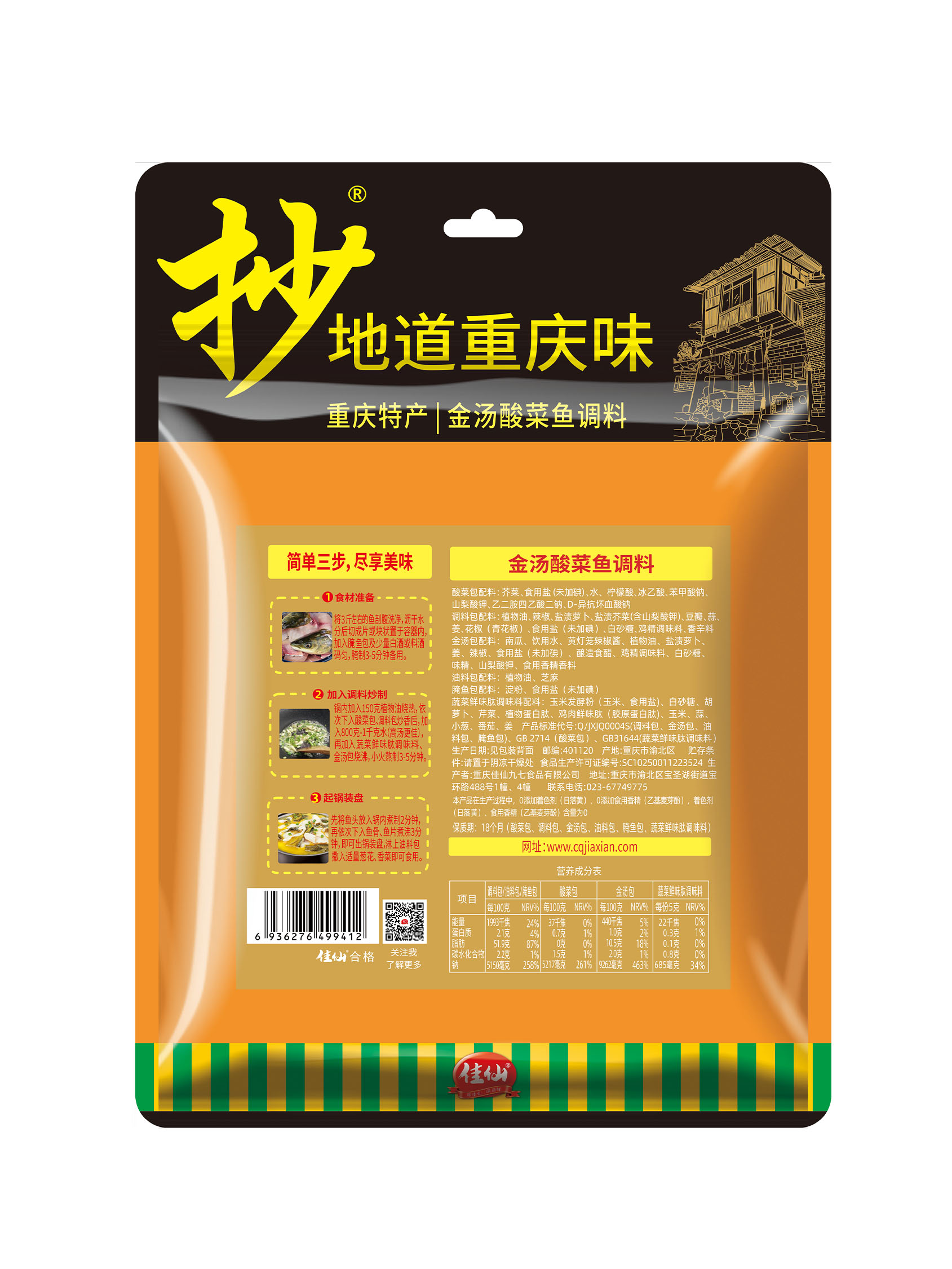 料足量多內含6包料,且選用腌制半年以上的老壇酸菜,酸香濃郁,爽脆可口。金湯風味使烹飪的酸菜魚湯汁金黃,更有食欲。操作簡單,3步輕松制作媲美餐廳味道的金湯酸菜魚,還可以用于烹飪酸菜肉絲面、酸菜雞、酸湯肥牛等。