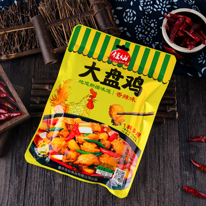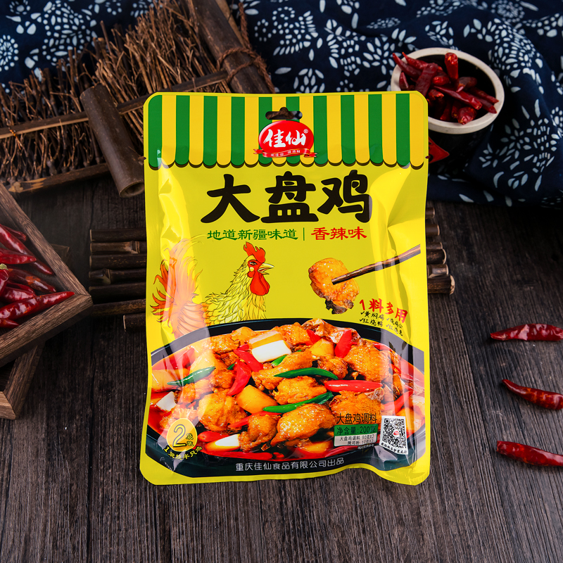大盤雞調料200g 系列燒菜調料配料 產品簡介; 佳仙大盤雞調料精選新疆本地香辛料,鮮辣適口,地道新疆味;一包可燒半只雞;一料多用,也可用于燒雞公、紅燒雞、等美食。 產品賣點: 一袋可燒半只雞,地道新疆味道。 產品簡介; 佳仙大盤雞調料精選新疆本地香辛料,鮮辣適口,地道新疆味;一包可燒半只雞;一料多用,也可用于燒雞公、紅燒雞、等美食。 產品賣點: 一袋可燒半只雞,地道新疆味道。 淘寶商城 天貓商城 京東商城