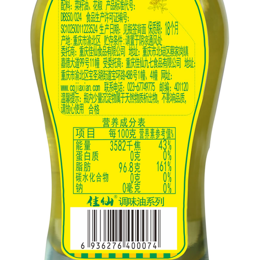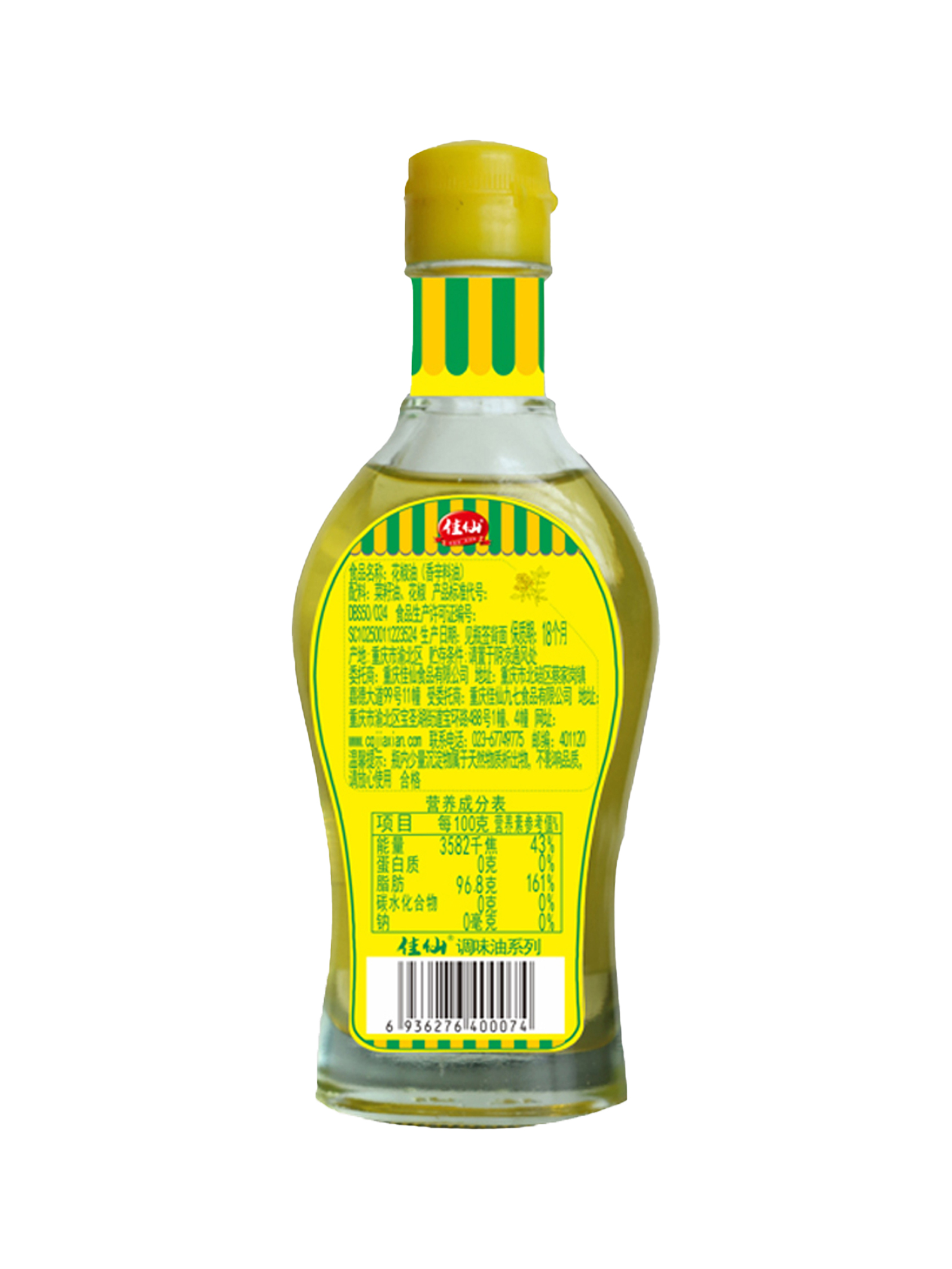佳仙花椒油使用茂汶出產(chǎn)的大紅袍花椒。與非轉(zhuǎn)基因菜籽油一起高溫?zé)釤挘慌淞现挥谢ń贰⒉俗延停?00%純天然,無(wú)任何添加劑。多道工序反復(fù)過(guò)濾,油汁清亮澄凈,保留花椒天然醇正的麻味。