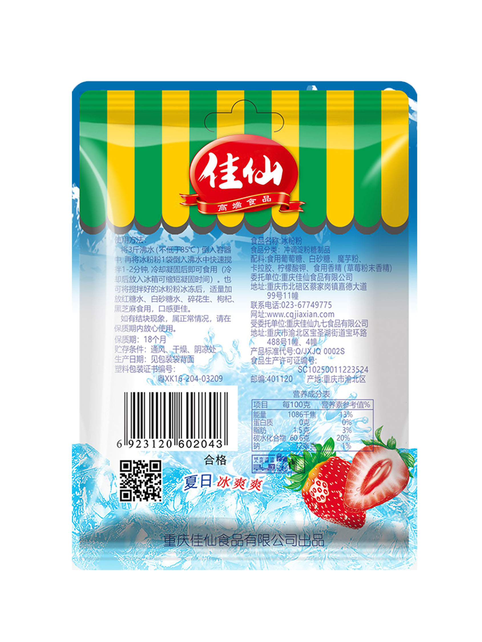 佳仙冰粉粉以魔芋粉為原料,零脂低卡,美味無負擔,可以用來DIY各式冰粉、果凍、飲品。制作方法簡單,獨立小包裝,儲存方便,隨拿隨用。
