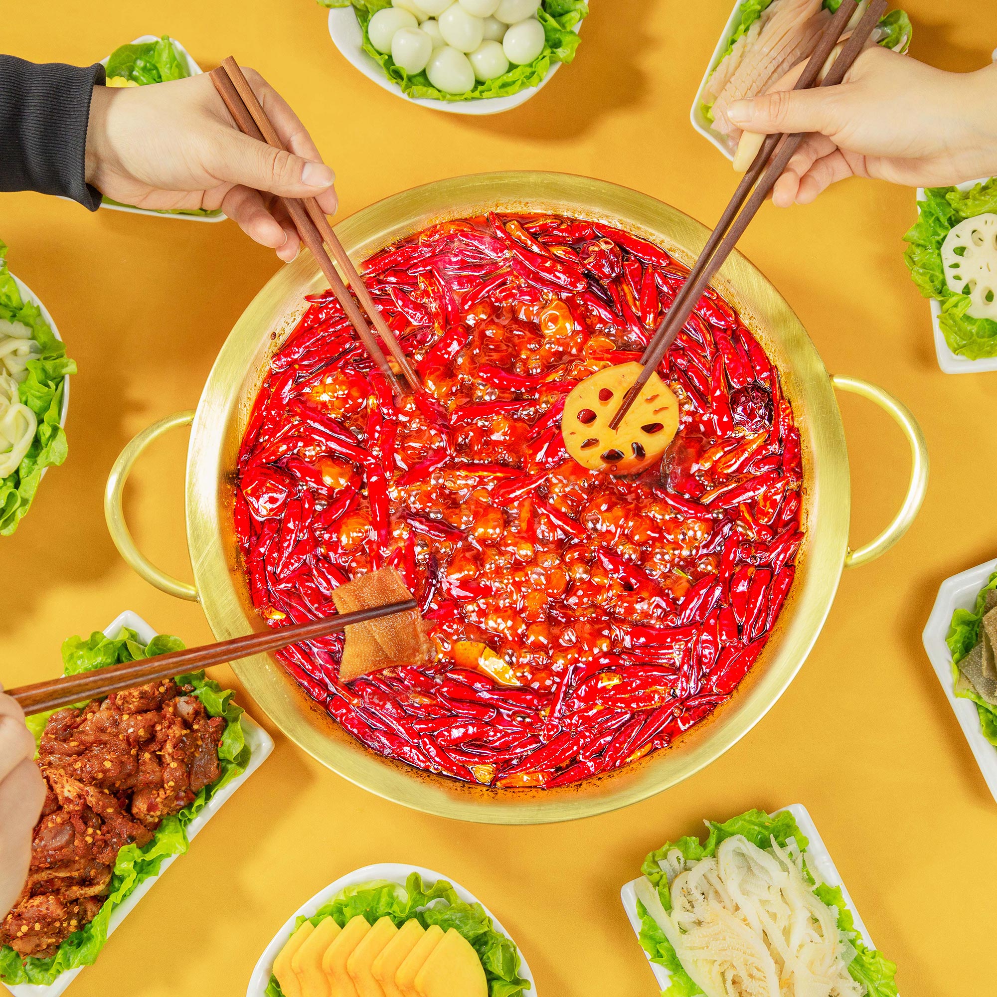 將本品放入鍋中,放入適量水(雞湯或骨頭湯口味更佳)煮沸后即可燙食菜品,無需再添加佐料。本品也可烹飪毛血旺、燒菜、炒菜面食等。