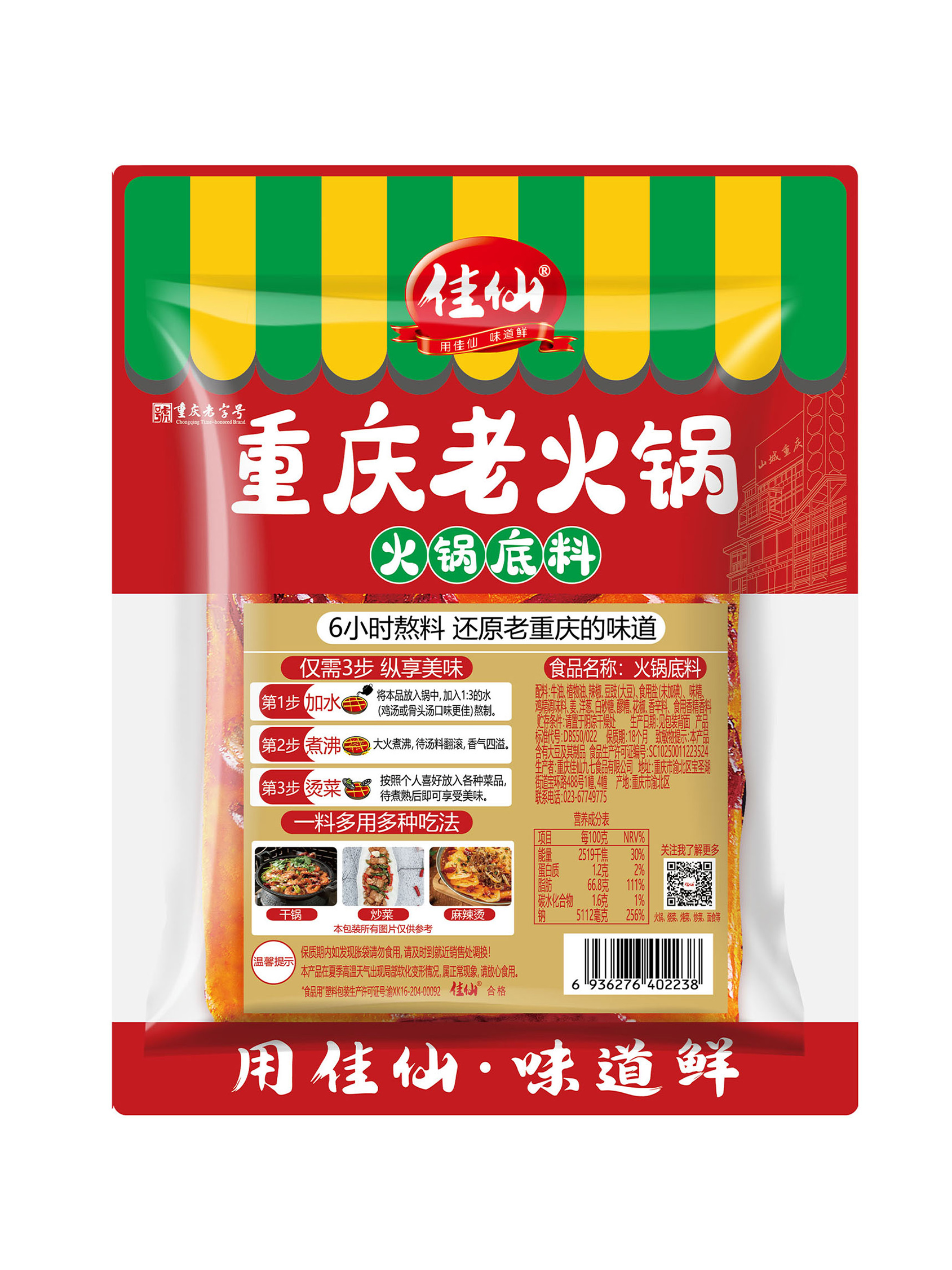 抄火鍋底料是重慶非物質文化遺產,它源起朝天門碼頭的老字號火鍋店,底料配方經過三代人的心手相傳延續至今。抄火鍋底料精選重慶本地產的紅辣椒、花椒、豆瓣、以及十多種香辛料,融合上等牛油,運用獨家秘方熬制6小時以上。將新油熬出了老油的口感,還原了地道的重慶味。具有辣而不燥,麻辣并重,香醇濃郁,久煮不渾,回味悠長的特點。