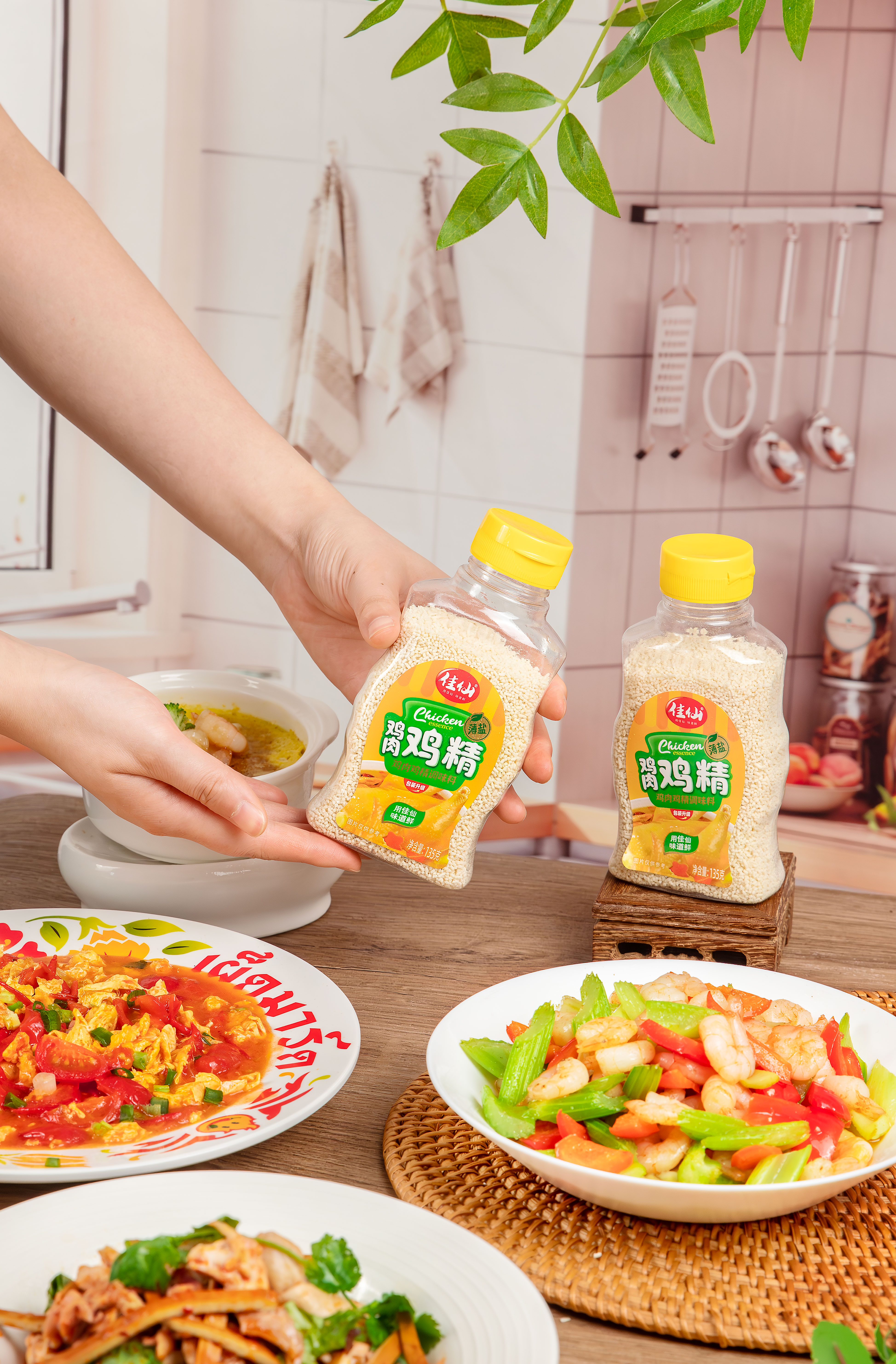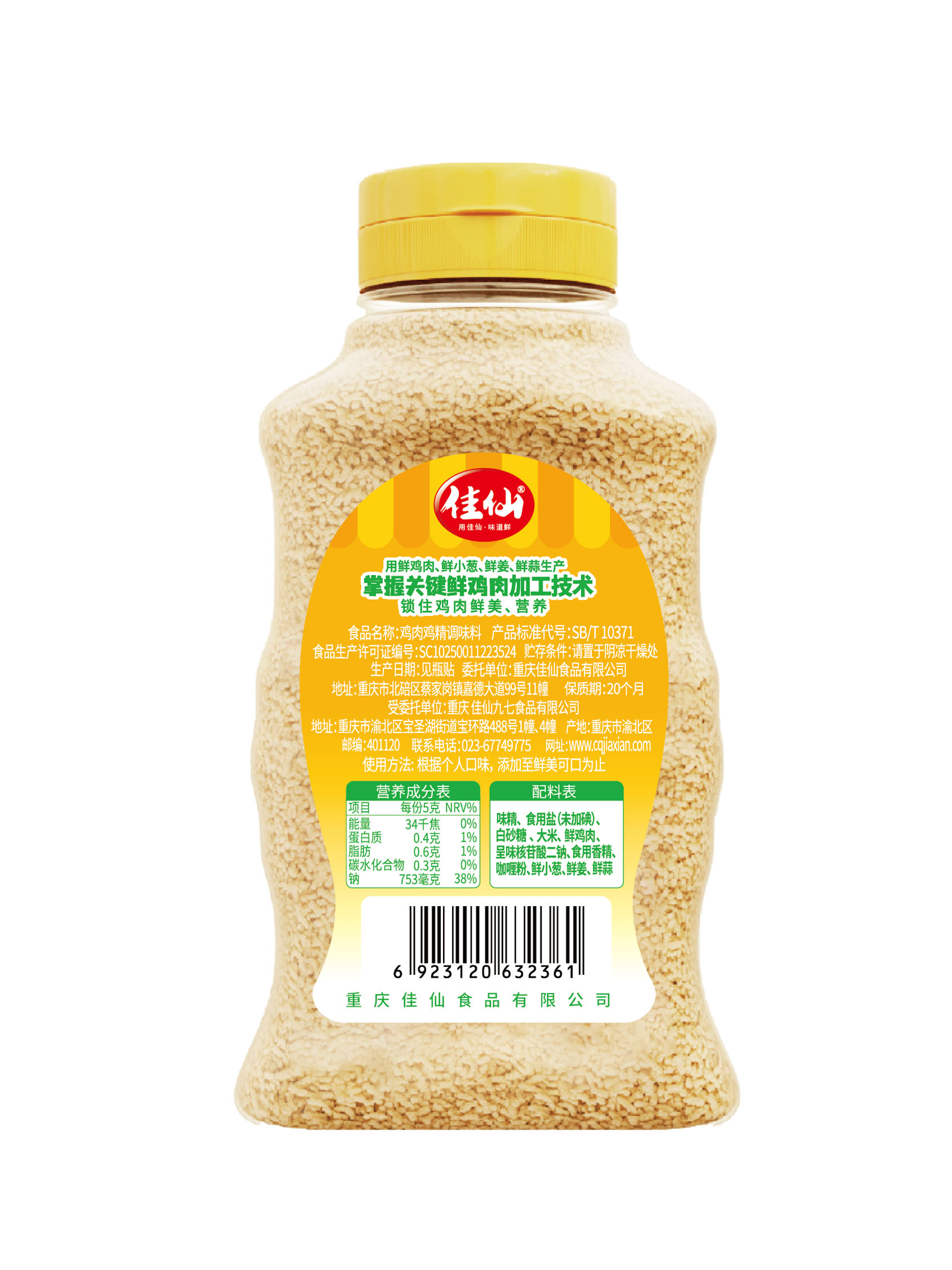 佳仙雞肉雞精嚴選雞肉萃取干燥加工制成,雞香風味飽滿,鮮味柔和純正,腌炒蒸煮時適量使用讓菜肴自然提鮮,更加美味;此外還有炒菜、煲湯、火鍋、蒸菜等多用途。
