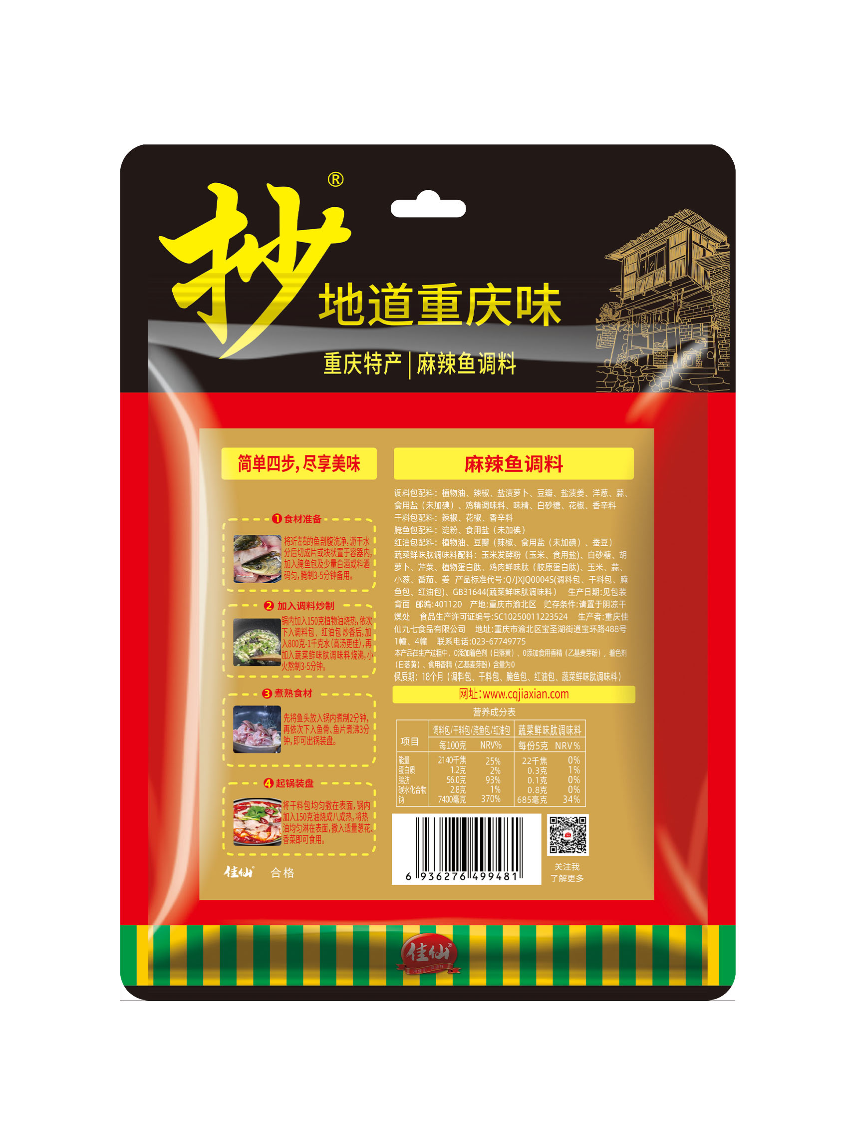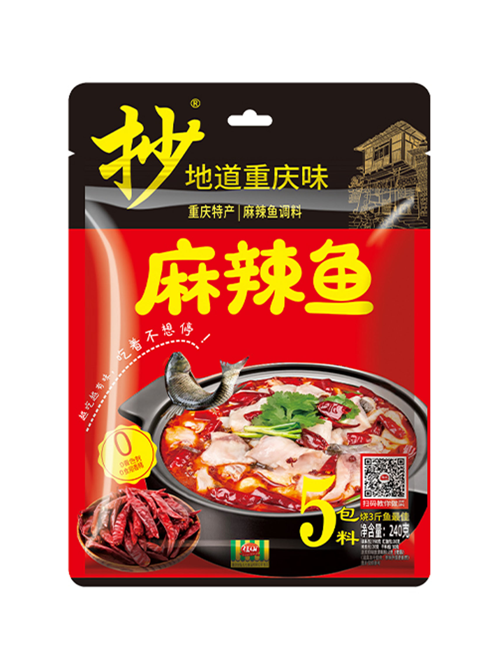 料足量多內(nèi)含5包料,選用二荊條、小米辣等多種辣椒配以花椒、豆瓣、豆豉等多種香辛料制作秘制醬料,使得烹飪的麻辣魚麻辣激爽,入味香濃。操作簡單,4步輕松制作地道重慶味的麻辣魚。還可以用于毛血旺、豆花魚等。