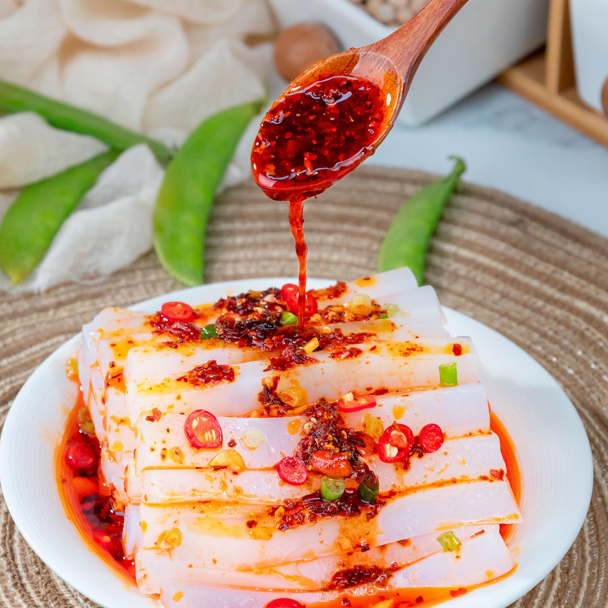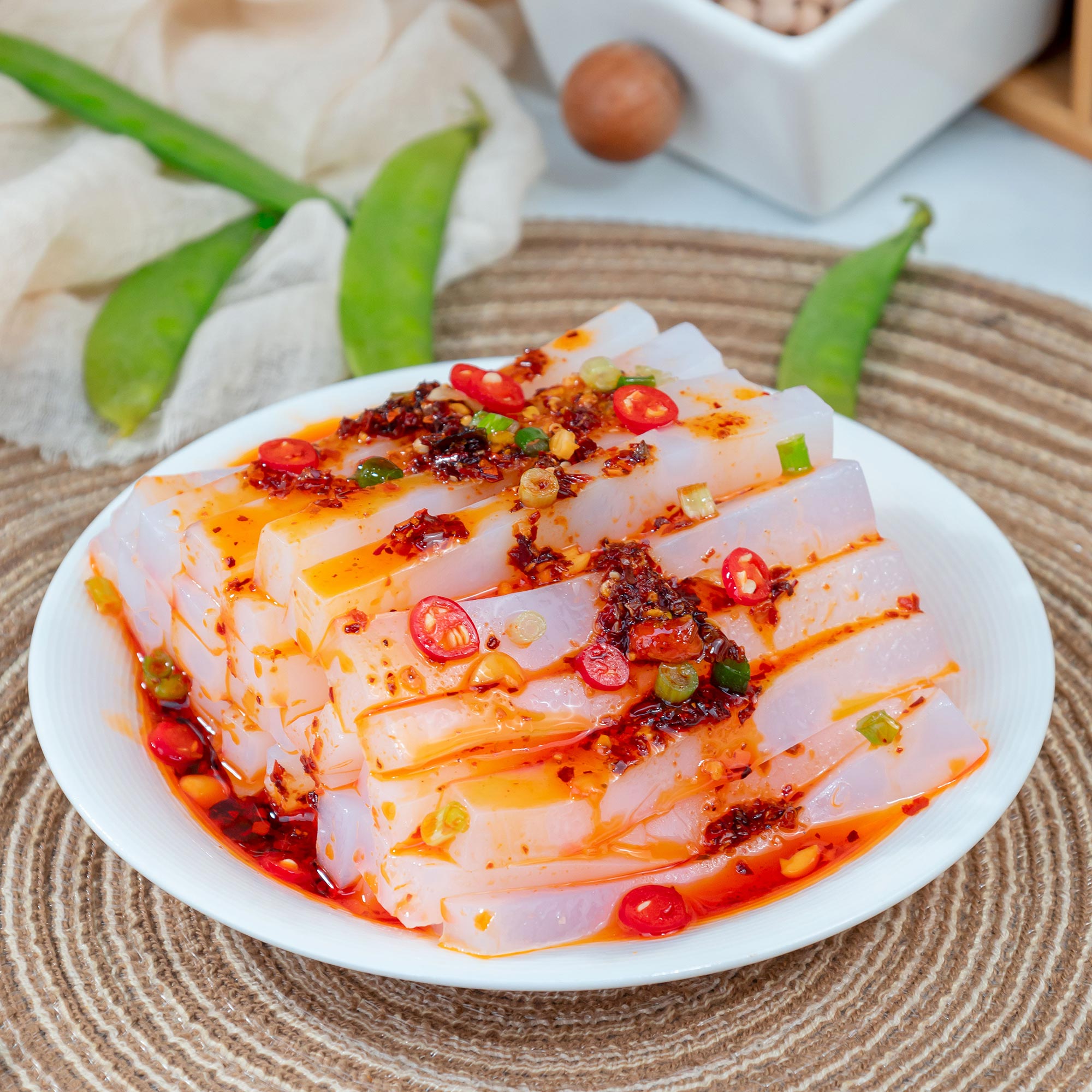 使用粒粒飽滿的干豌豆除雜磨粉過(guò)濾制成,色澤潔白柔和,自帶清新豌豆香,不摻雜其他味道,可以用于制作涼粉,也可以用于嫩魚(yú)、嫩肉,用法多樣。