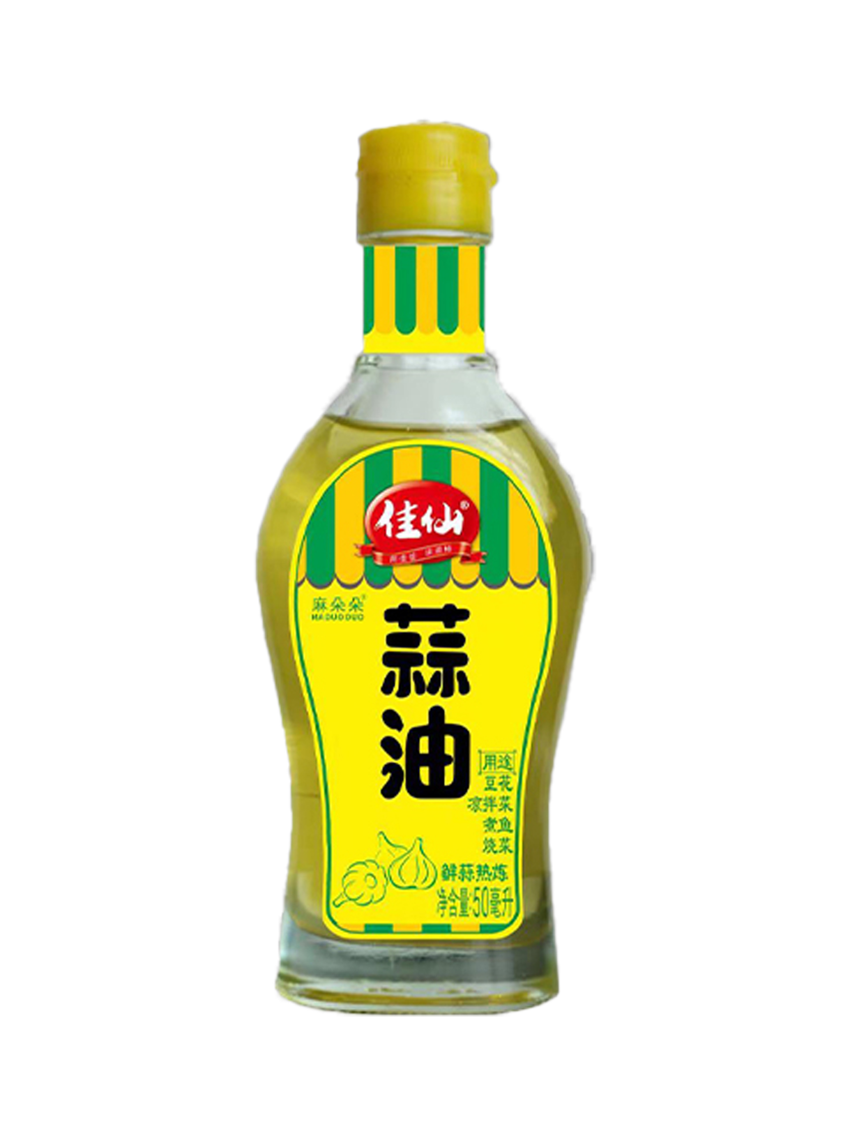 佳仙蒜油使用山東大蒜為原料,與植物油一起高溫熱煉;配料只有大蒜、植物油,100%純天然,無任何添加劑;多道工序反復過濾,油汁清亮澄凈,滴滴帶著蒜香。