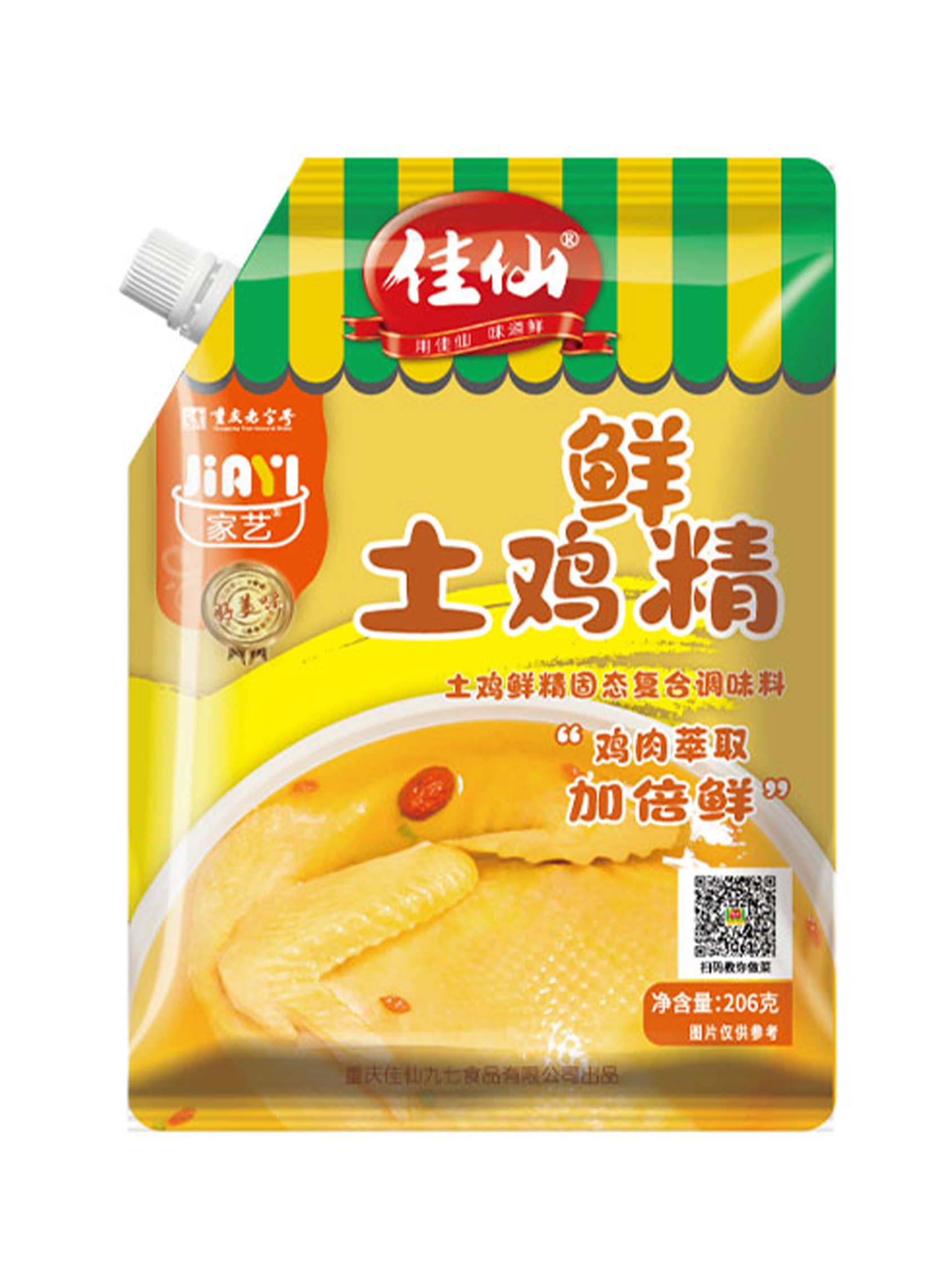 以鮮土雞為原料,嚴(yán)選雞肉萃取干燥加工制成,雞香風(fēng)味飽滿,腌炒蒸煮時(shí)適量使用讓菜肴自然提鮮,更加美味??捎糜诔床恕㈧覝?、火鍋、蒸菜、拌餡等
