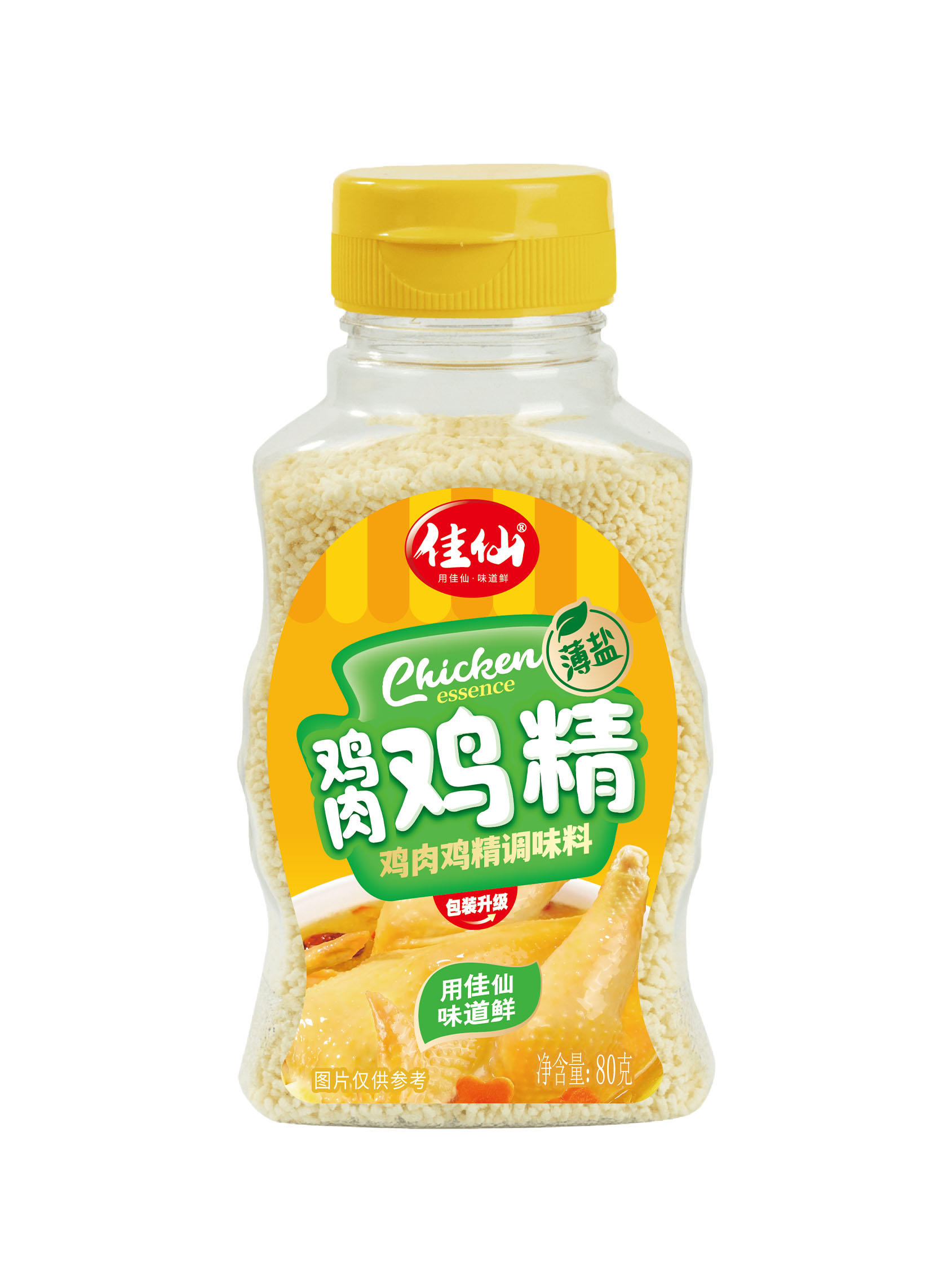 佳仙雞肉雞精嚴選雞肉萃取干燥加工制成,雞香風味飽滿,鮮味柔和純正,腌炒蒸煮時適量使用讓菜肴自然提鮮,更加美味;此外還有炒菜、煲湯、火鍋、蒸菜等多用途。