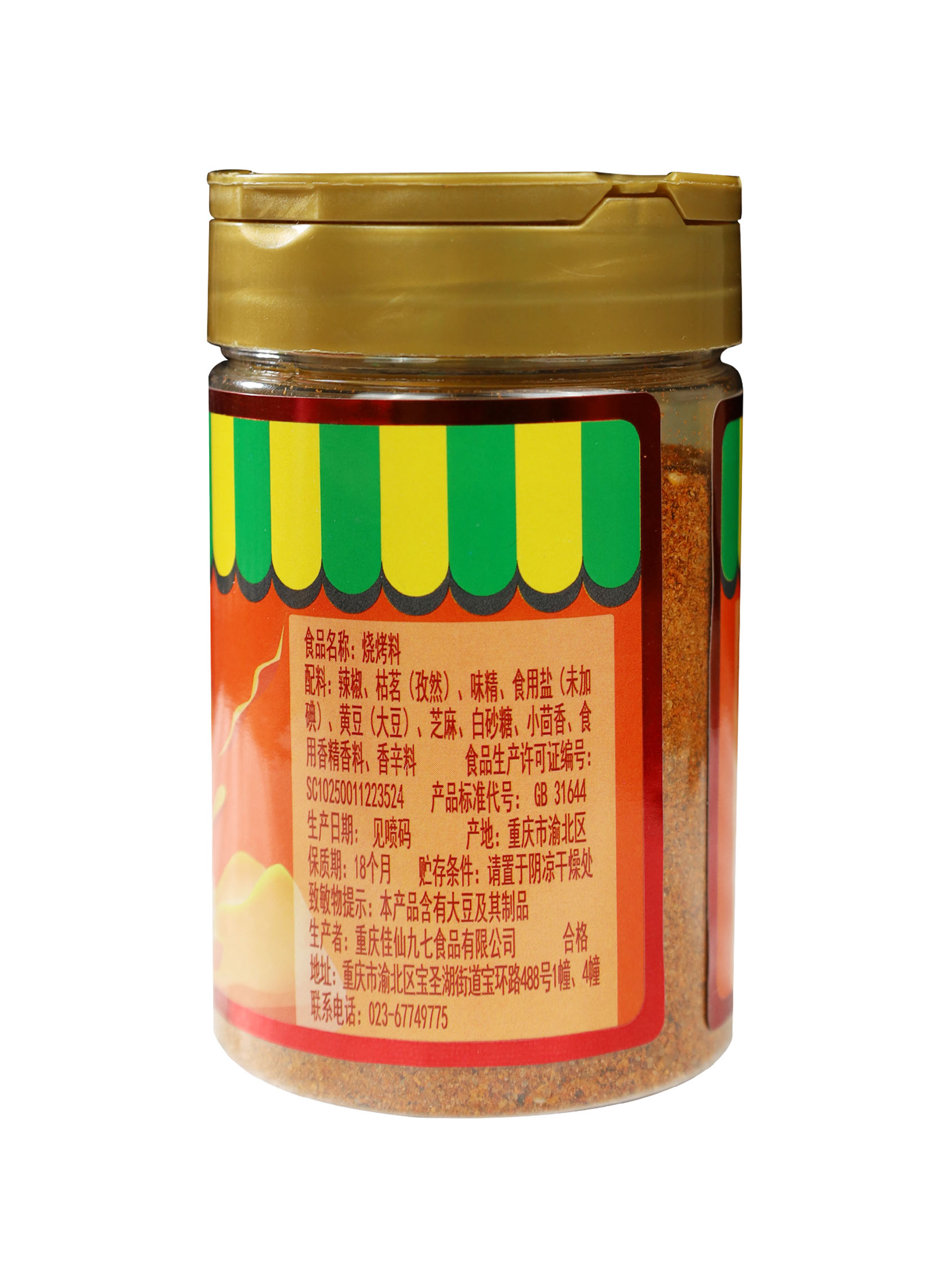 佳仙燒烤料專為燒烤研制,甄選多種香辛料精心調(diào)配,雙口設(shè)計(jì)方便控制取用量,可撒可拌可蘸,用途多樣,使用簡(jiǎn)單,烤肉串、烤蔬菜時(shí),輕輕一撒就能提味增香,品嘗到麻辣鮮香的燒烤。