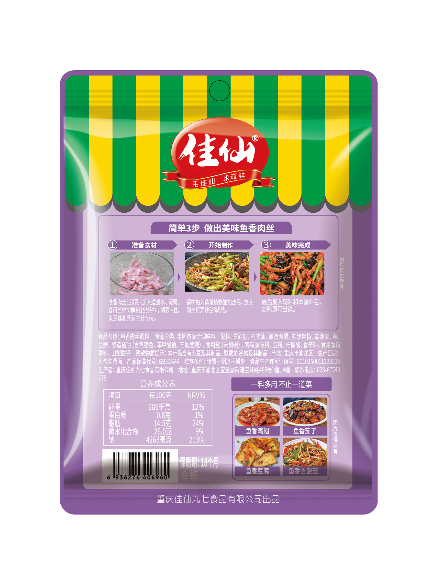 佳仙魚香肉絲調(diào)料甄選多種優(yōu)質(zhì)原料,大廚秘制配方,地道川味;酸甜魚香,開胃下飯;簡單便捷,一包料做出正宗味道,還原餐廳堂食級風味。
