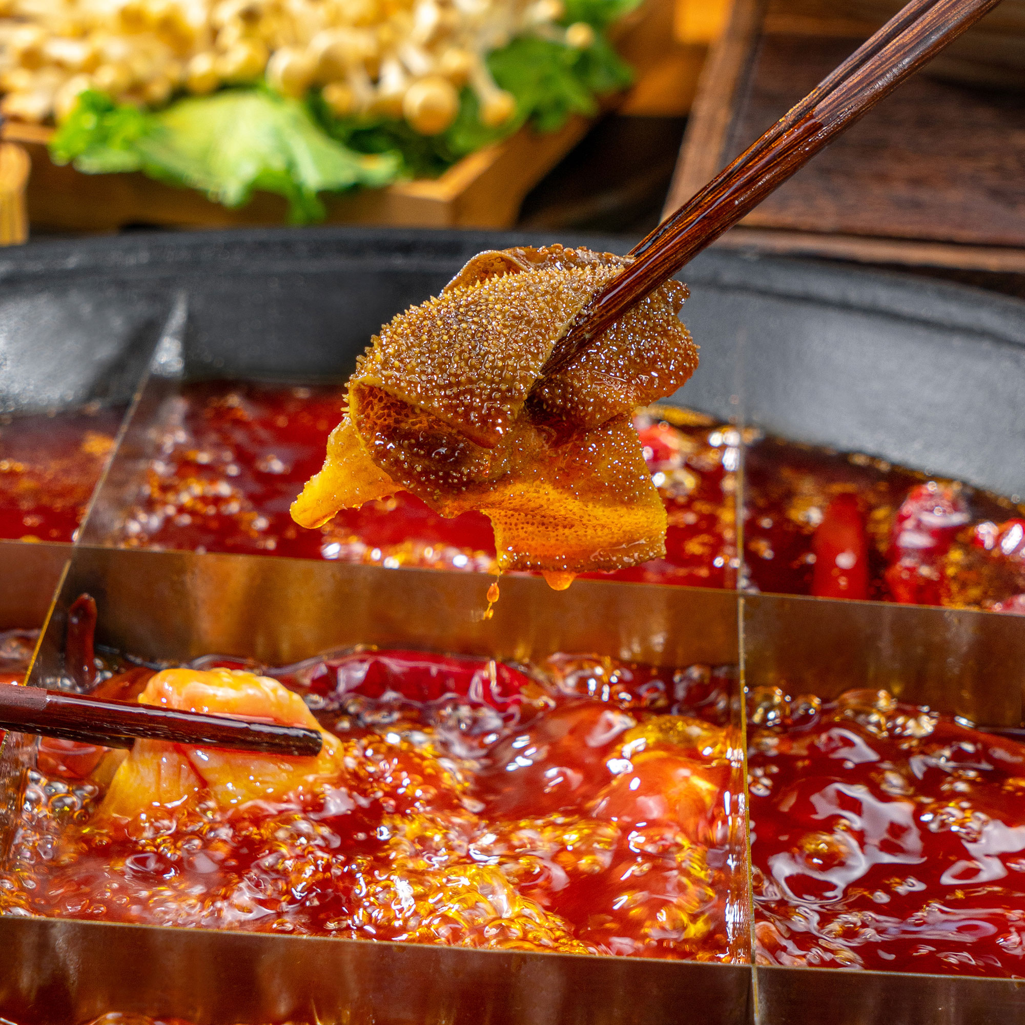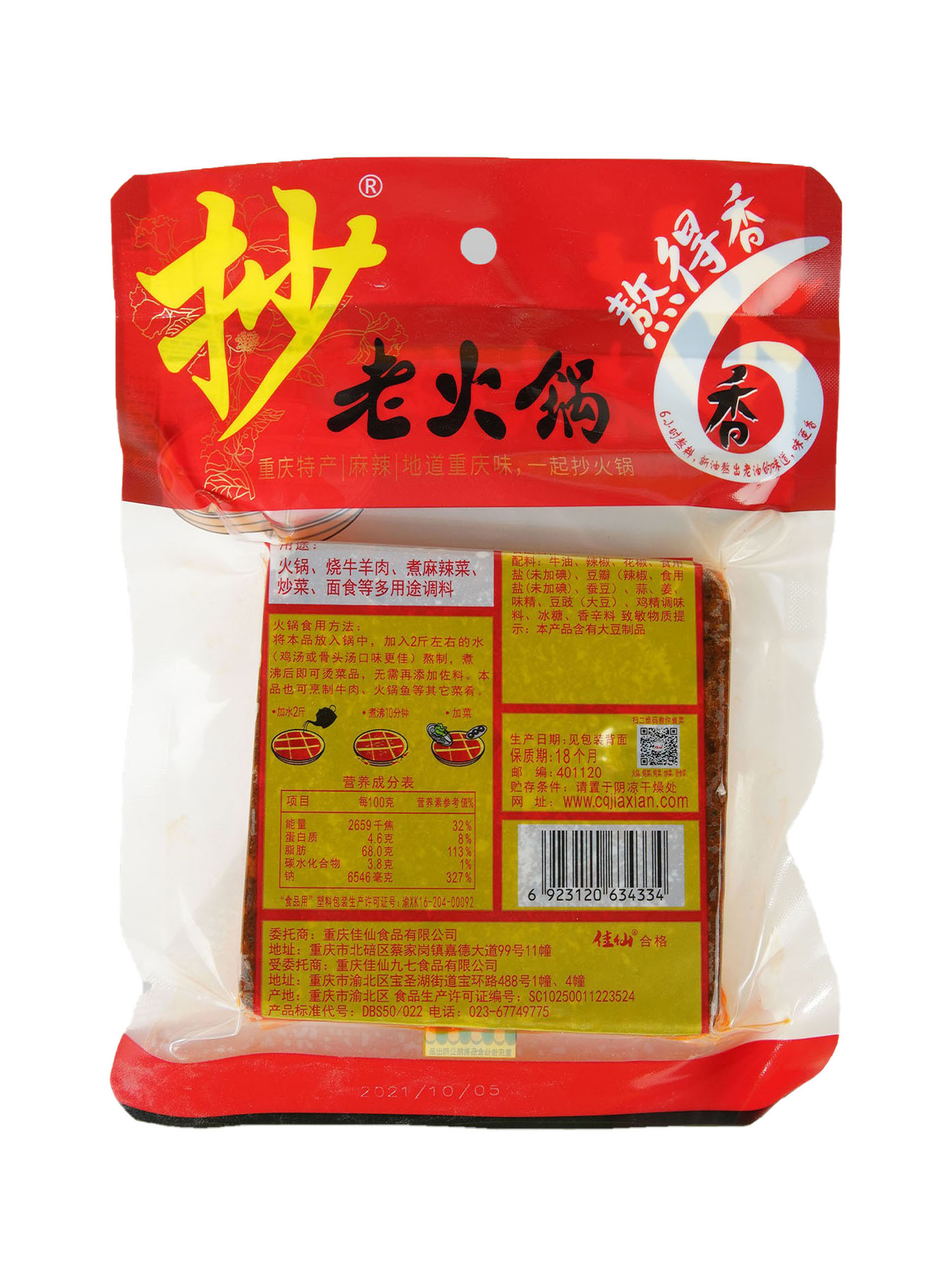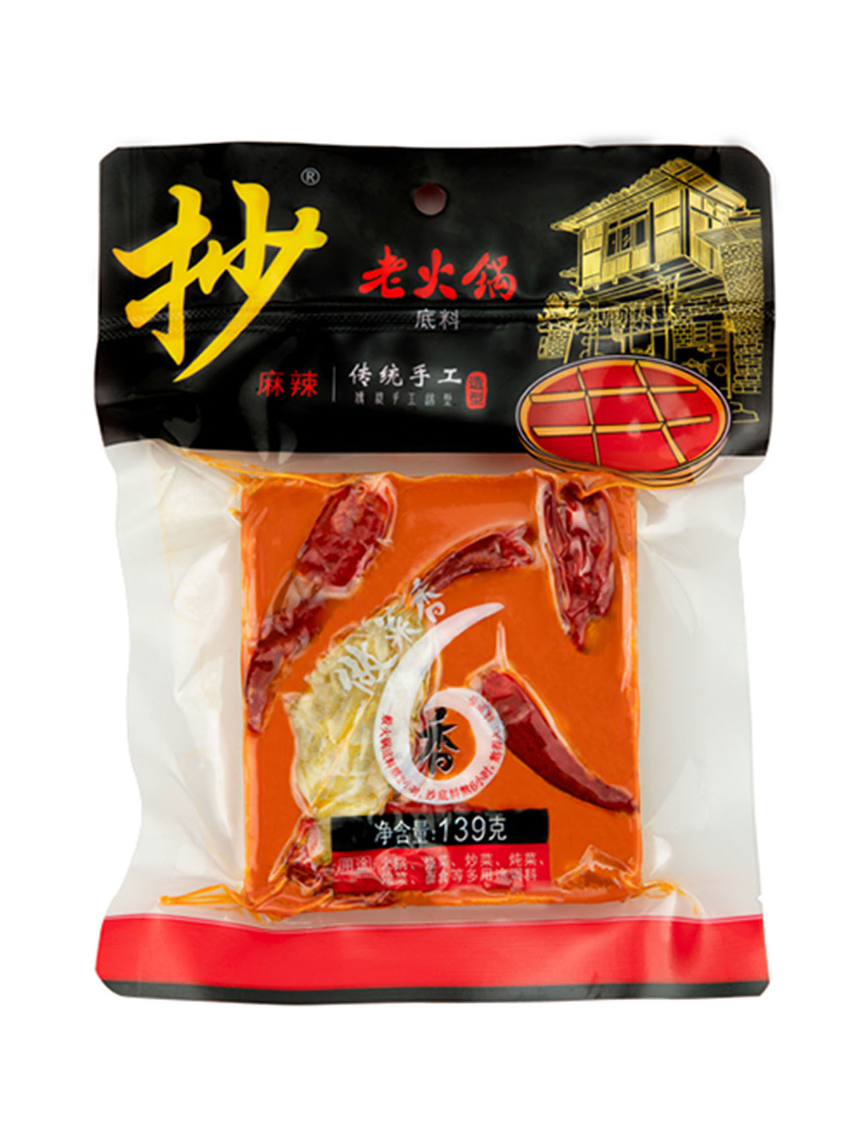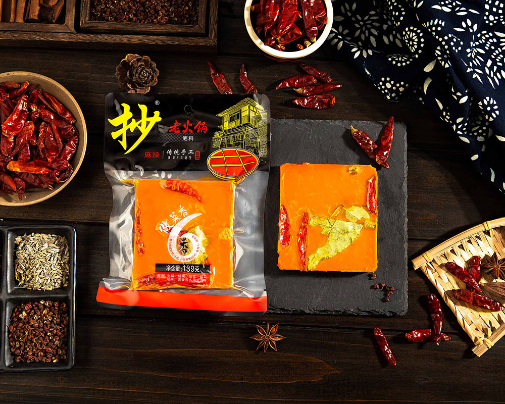 抄火鍋底料是重慶非物質文化遺產,它源起朝天門碼頭的老字號火鍋店,底料配方經過三代人的心手相傳延續至今。抄火鍋底料精選重慶本地產的紅辣椒、花椒、豆瓣、以及十多種香辛料,融合上等牛油,運用獨家秘方熬制6小時以上。將新油熬出了老油的口感,還原了地道的重慶味。具有辣而不燥,麻辣并重,香醇濃郁,久煮不渾,回味悠長的特點。